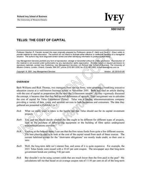 Download TELUS THE COST OF CAPITAL CASE SOLUTION Kobo Gutenberg